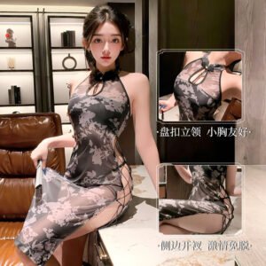Sink into ethereal, head-turning allure with this Sexy lingerie piece: an ink-wash floral sheer cheongsam that marries new Chinese elegance with unapologetic temptation. Its traditional frog-button stand collar (curated for small busts) frames a teasing neckline, while gossamer-thin translucent fabric drapes curves in soft, luminous mystery. The thigh-high slit—laced with delicate ties—unfolds with effortless passion, blending vintage grace and bold allure in every line.